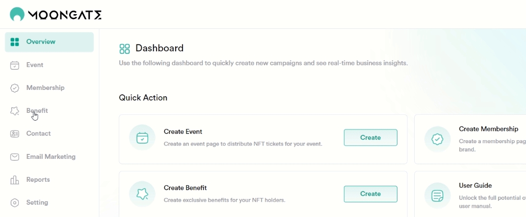 Navigate to the 'Dashboard' panel by selecting any benefits in the 'Benefit' Panel