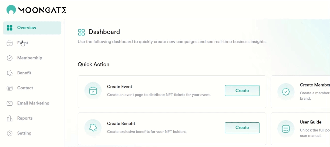 Navigate to the 'Dashboard' panel by selecting any memberships in the 'Membership' Panel
