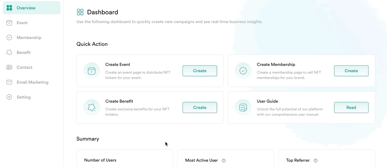Sign into the Moongate Merchant Portal, open the ‘Event’ tab, and click ‘Create’.