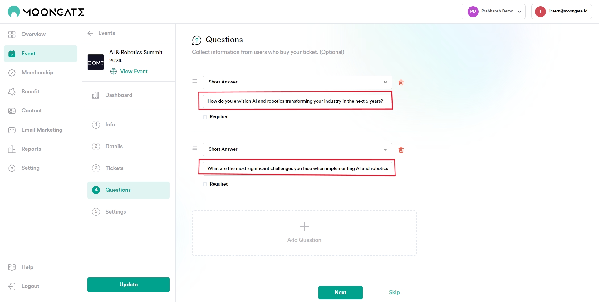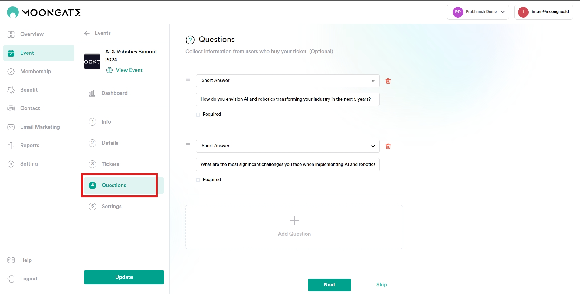 Navigate to the ‘Event’ tab in your dashboard, select the event for which you want to collect additional information.