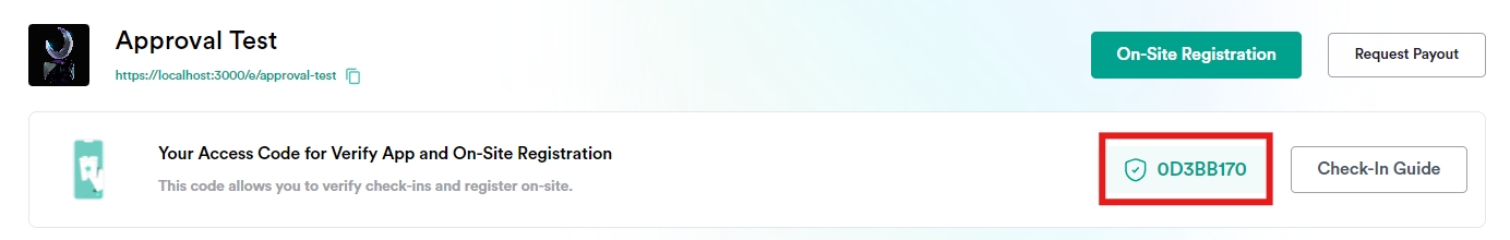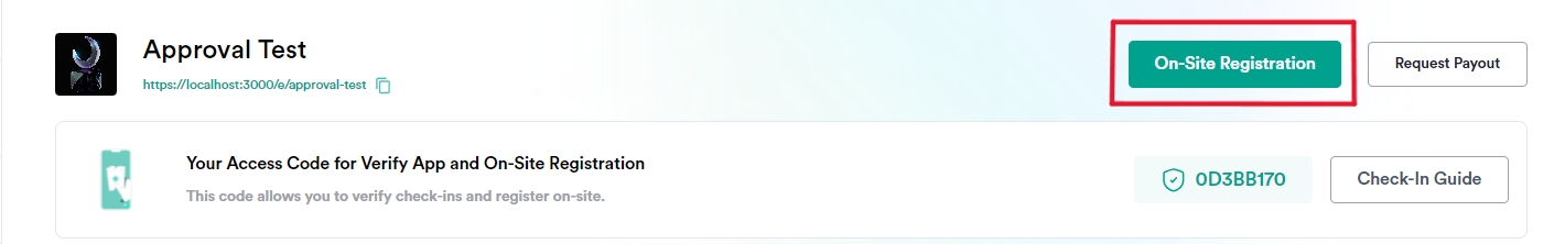 Organizers need to request permission to enable on-site registration for their events. Once requested, our team will handle the addition of this feature.