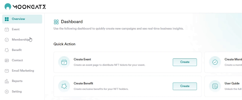 Step 1: Navigate to the 'Event' tab, select the event with 'On-Site Registration' functionality, and then navigate to the 'Dashboard' panel.